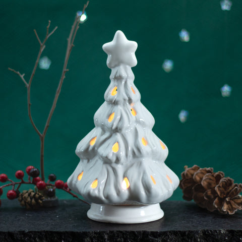 White Tree with Star Lantern, Candle Holder, Cozy Holiday Luminary
