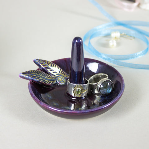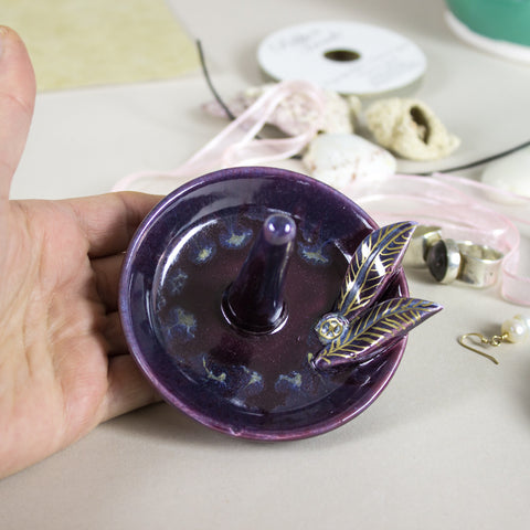 Ring dish, ring holder, Personalized Custom choices, wedding gift, Eggplant purple gold outlines