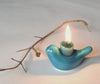 A hand thrown small Sea Glass Aqua Green ceramic votive h...Ceramic candle holder, Matte Velvet Purple Blue with copper line